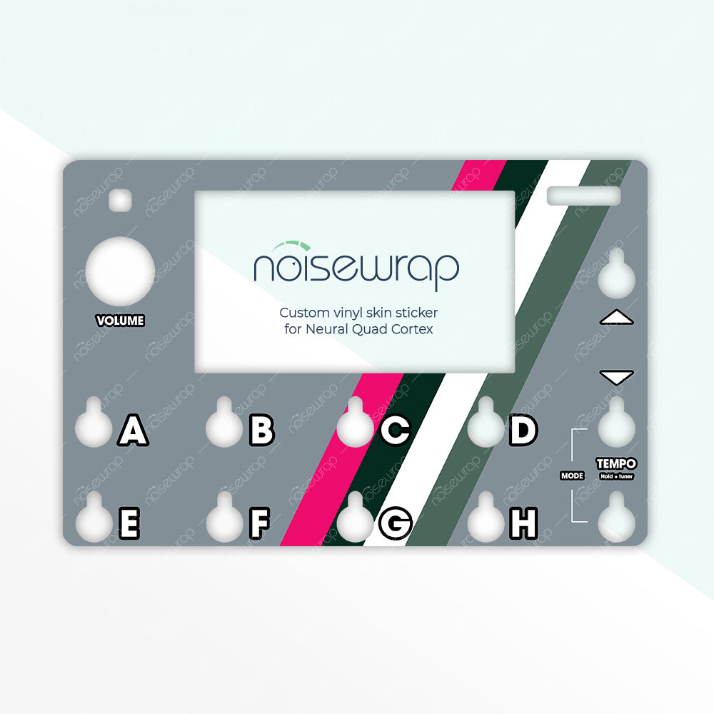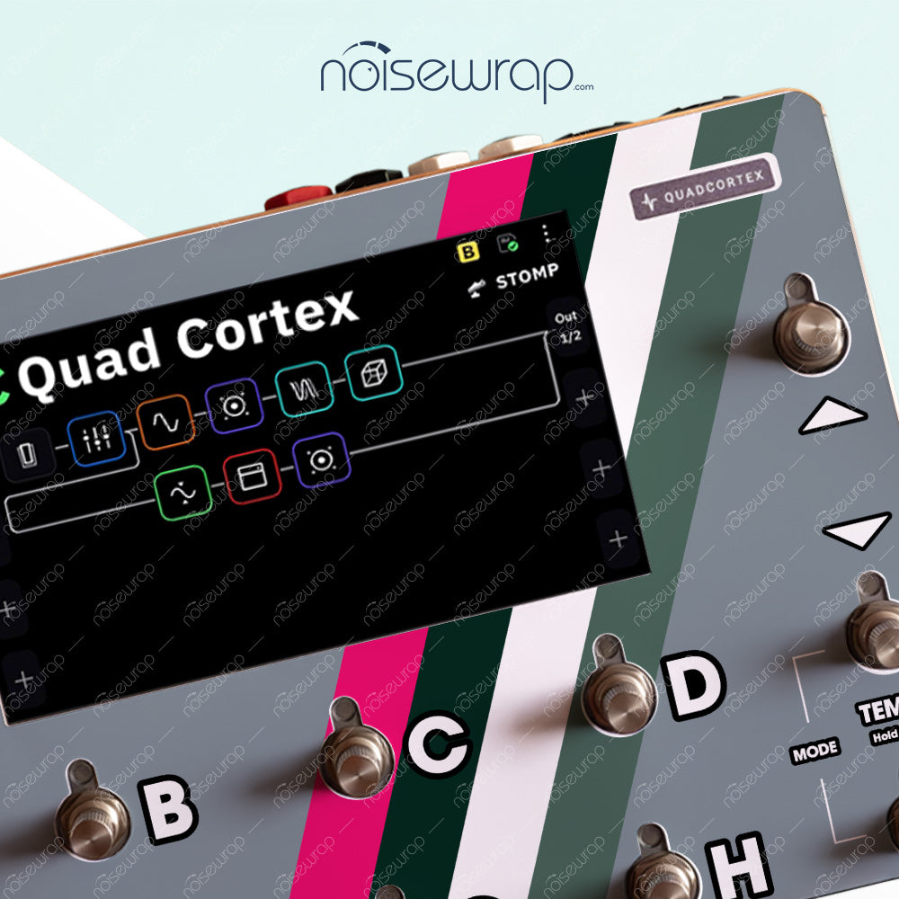 Add a pop of color to your device with the Accent Stripes skin. Featuring a sleek combination of bold pink, deep green, and crisp white stripes on a neutral gray backdrop, this design delivers a striking contrast that stands out. Ideal for musicians who want to inject energy and style into their gear. Made to fit Quad Cortex device.