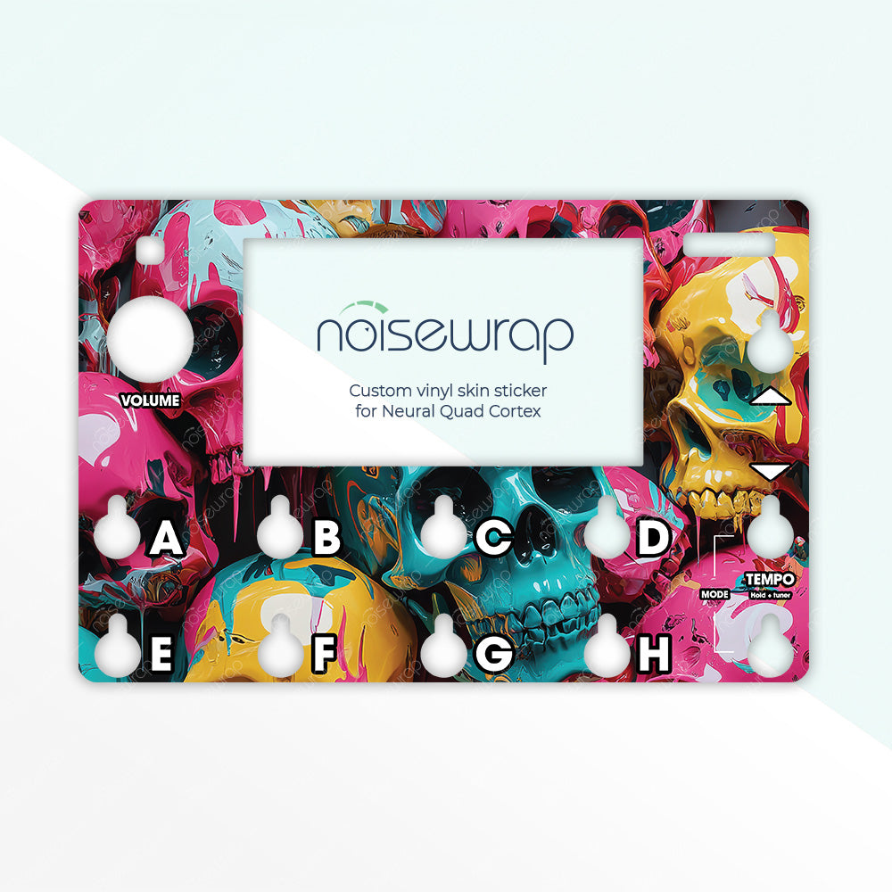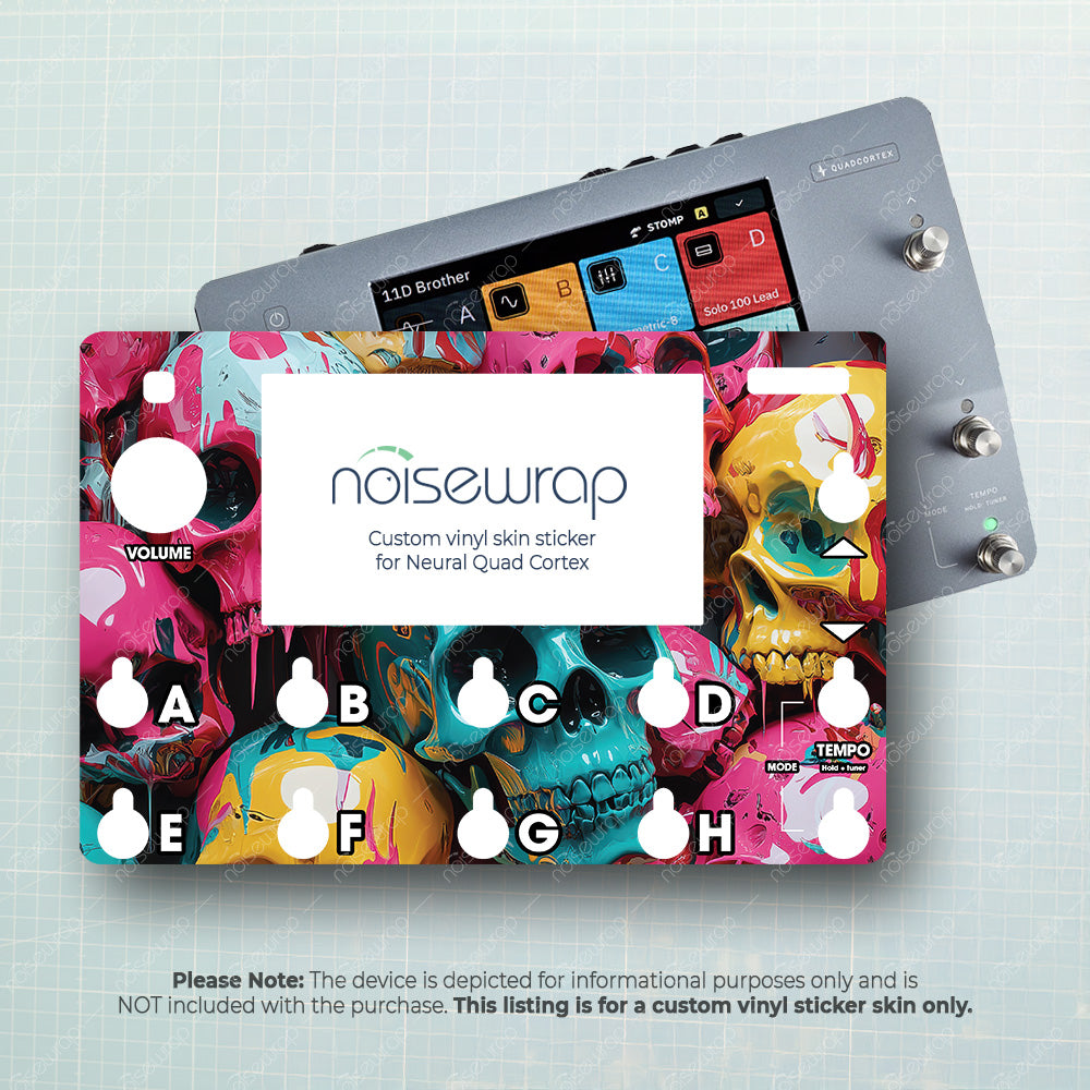 Bring a bold and edgy vibe to your device with the Acrylic Skulls vinyl skin. Featuring a striking array of colorful, paint-splattered skulls in vibrant pinks, yellows, blues, and more, this design combines a dark aesthetic with a splash of artistic flair. Perfect for musicians who want to make a statement with their gear, the Acrylic Skulls skin is as eye-catching as it gets. Made to fit Quad Cortex device.