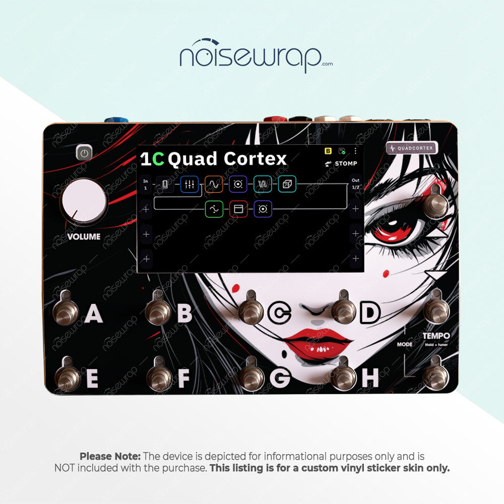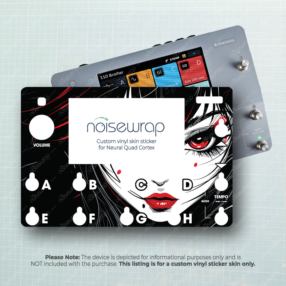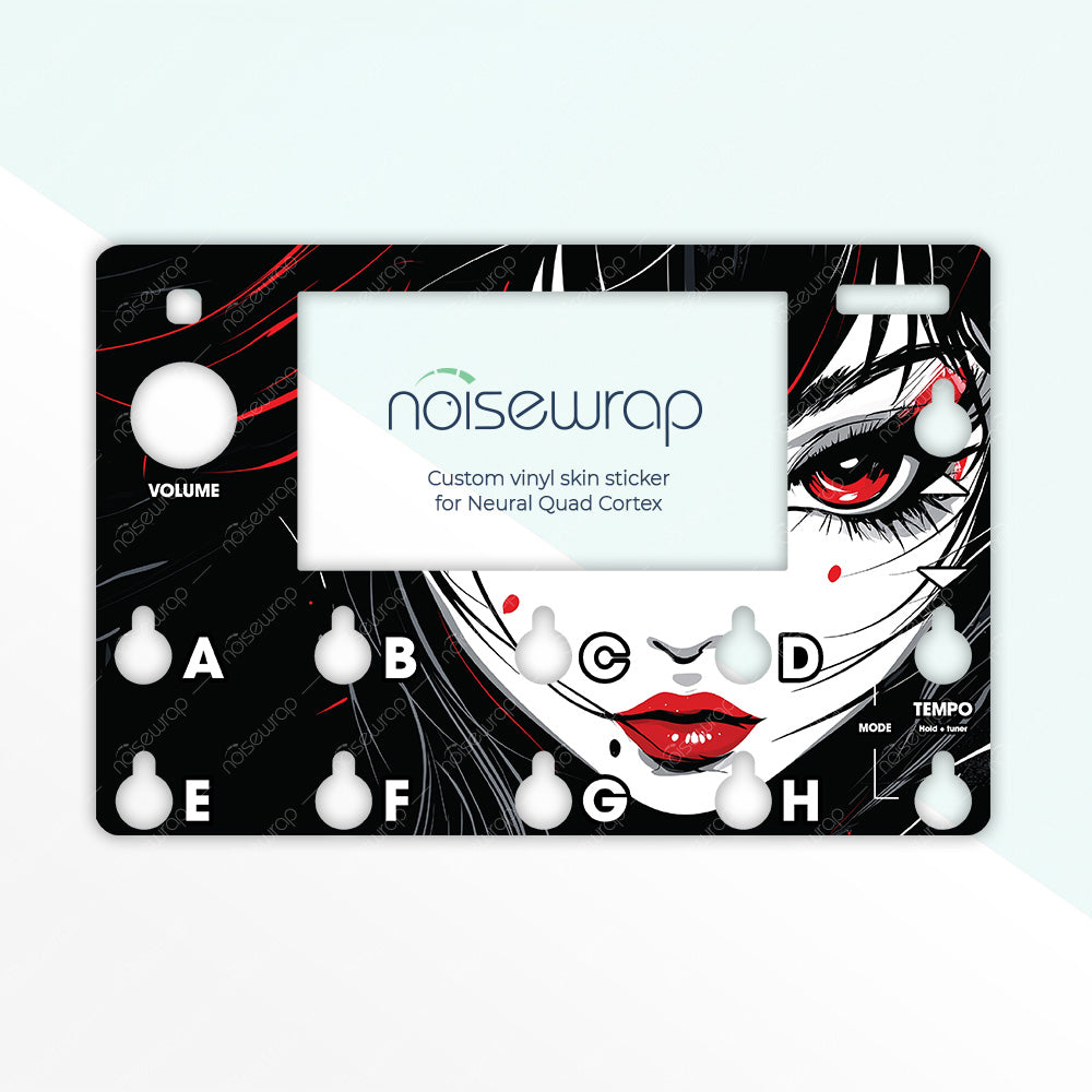 Elevate your device with the Dark Anime Portrait vinyl skin. Featuring an intense, high-contrast illustration of a mysterious girl with piercing red eyes and striking black hair, this design delivers a bold, edgy look. Perfect for musicians looking to enhance their gear with a unique, dramatic visual. Made to fit Quad Cortex device.