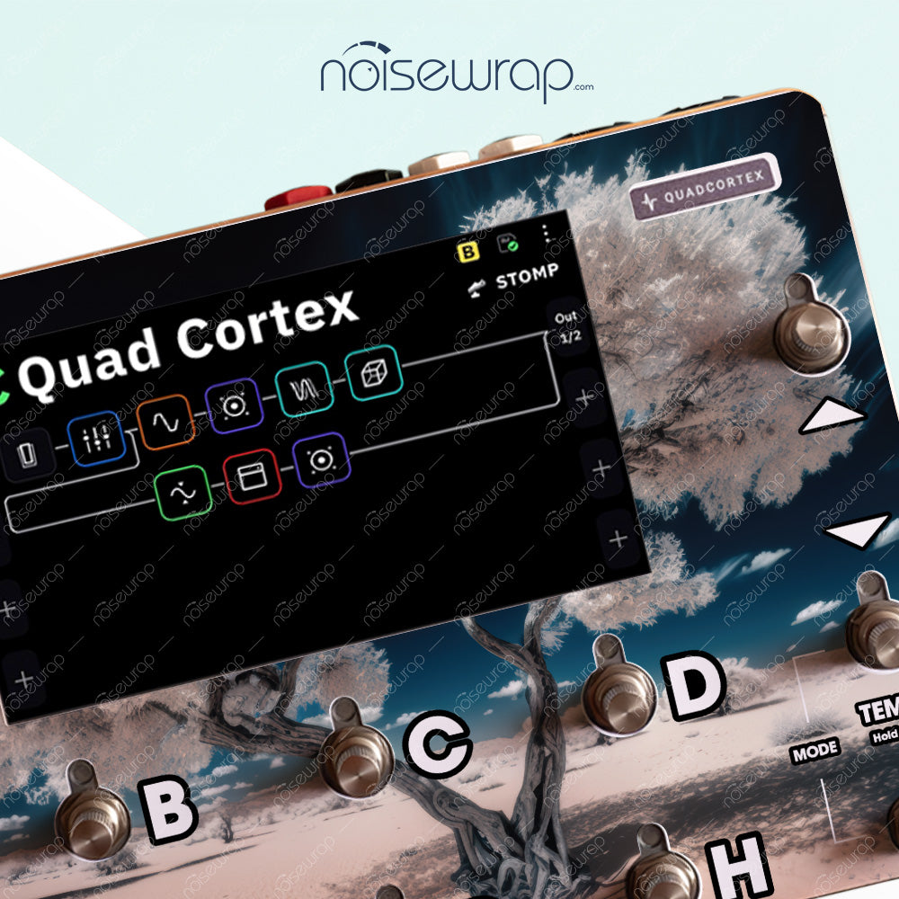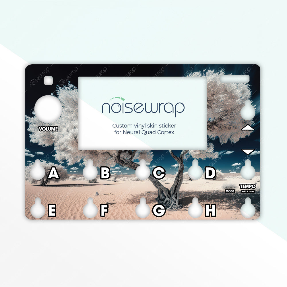 Bring a calm yet surreal Desert IR Oasis shot to your device with this unique vinyl skin. Featuring stark, white trees against a deep sky, this serene desert scene captures a mix of minimalism and tranquility. Perfect for producers and musicians looking to infuse their rig with a touch of art and nature. Made to fit Quad Cortex device.