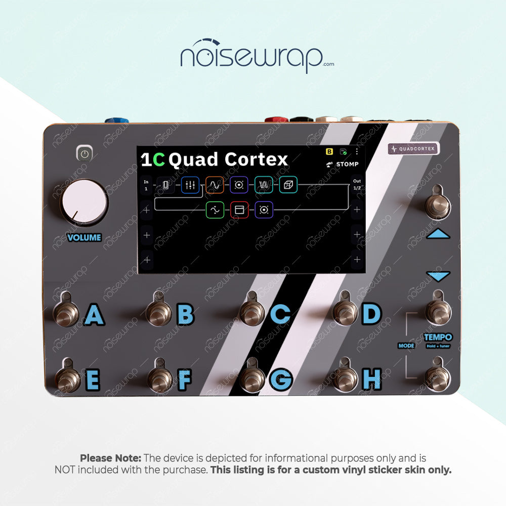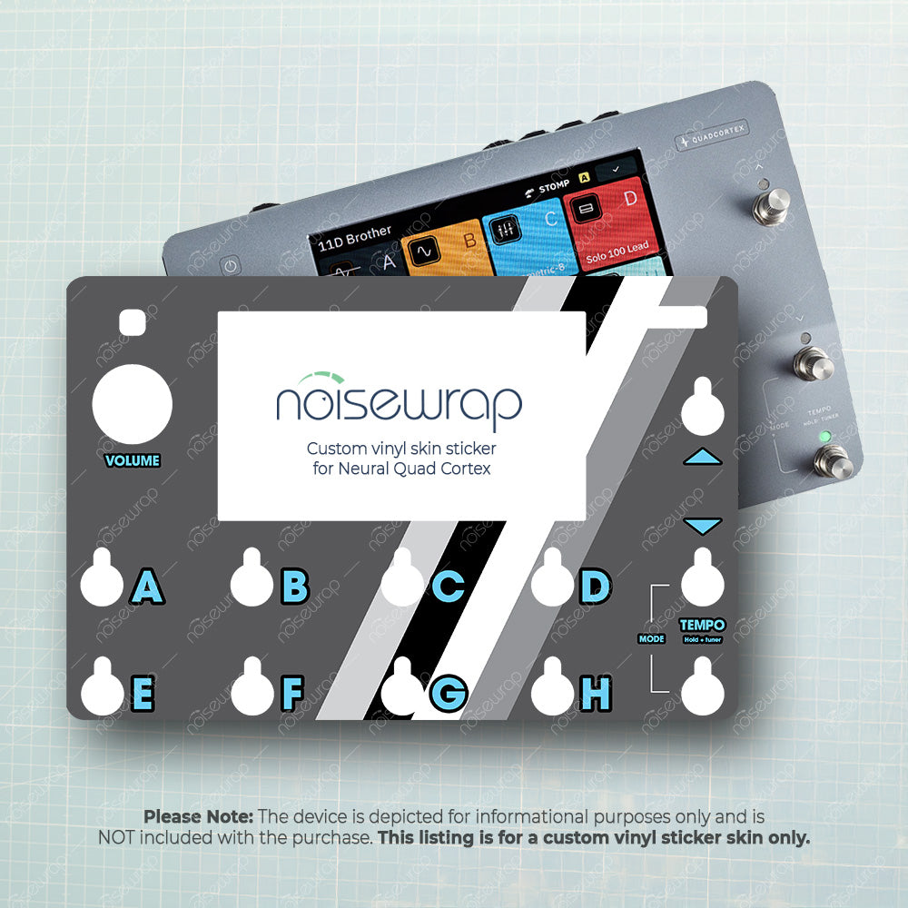 Sleek and modern, the Monochrome Retro skin adds a dynamic edge to your device with its minimalist grey and white striped design. Ideal for those who prefer a clean and professional look, this vinyl skin offers a cool, understated style for your gear. Made to fit Quad Cortex device.