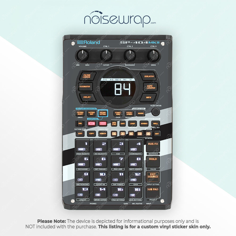 Add a sleek, modern touch to your device with the Monochrome Retro Stripes vinyl skin by NoiseWrap. Featuring bold black, gray, and white stripes, this design brings a contemporary, minimalist aesthetic to your gear. Perfect for musicians who appreciate clean lines and a timeless color scheme. Made to fit SP 404 mk2 device.