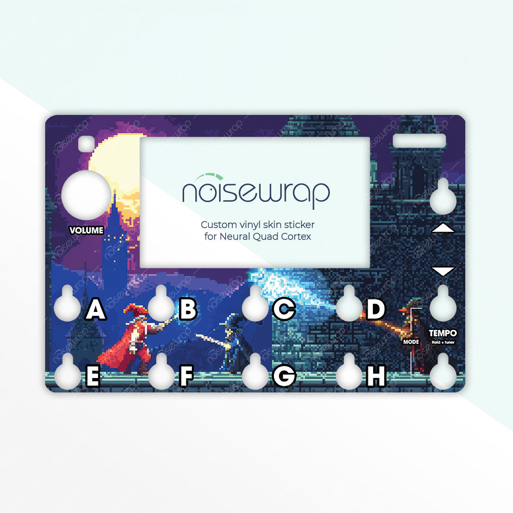 Channel the magic of old-school gaming with the Retro Wizards Duel Game vinyl skin. Featuring pixel-art wizards locked in a mystical battle against a moonlit castle backdrop, this design captures the nostalgia of classic 8-bit and 16-bit video games. Perfect for musicians who grew up with retro gaming or just love the pixelated aesthetic, the Retro Wizards Duel Game skin adds a fun, vibrant energy to your gear. Made to fit Quad Cortex device.