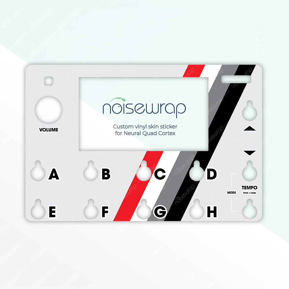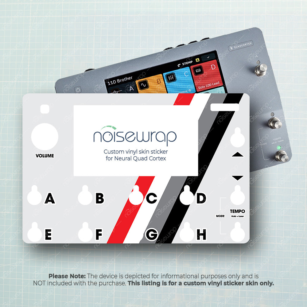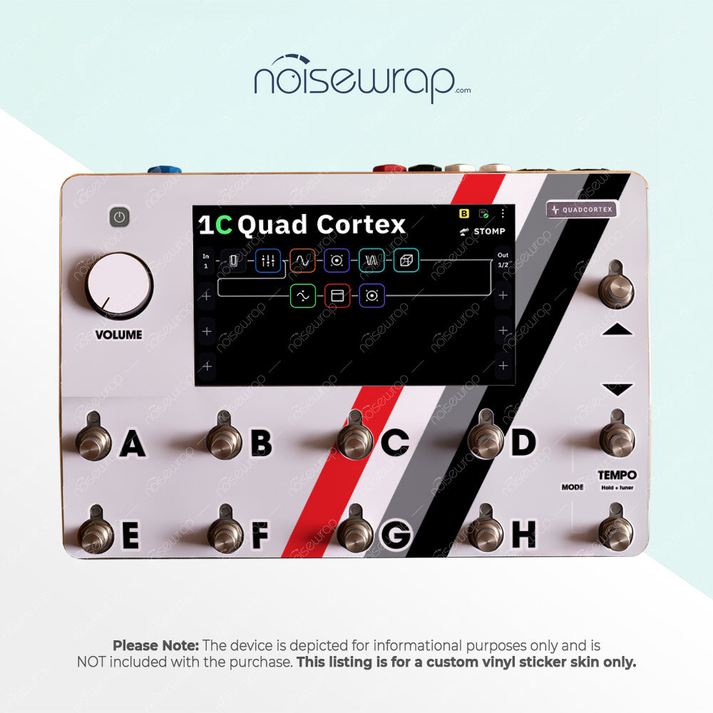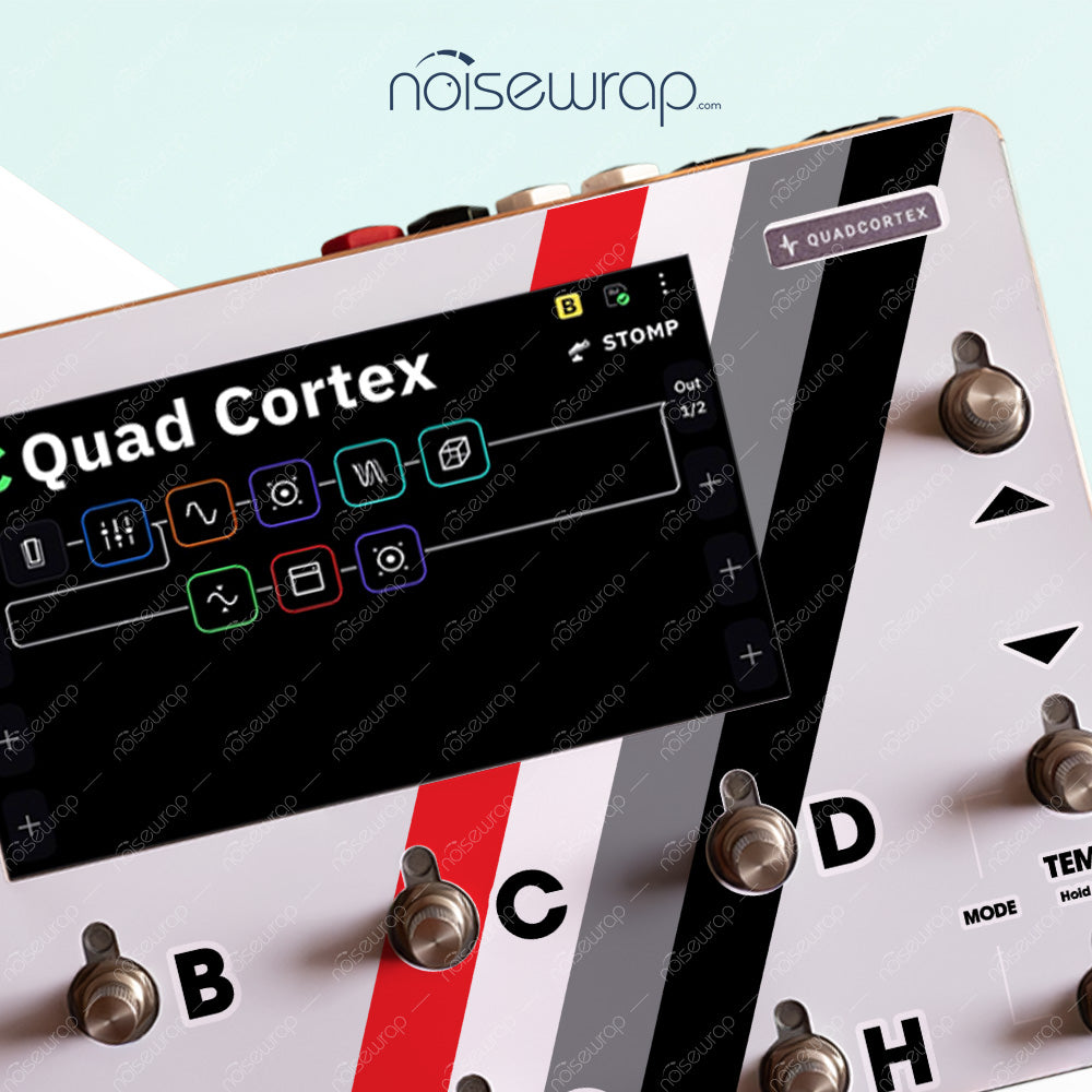 Rev up your device with the Racing Stripes vinyl skin by NoiseWrap. Featuring bold red, black, and grey stripes over a sleek white background, this skin brings a dynamic and sporty look to your device. Perfect for musicians who want their gear to reflect speed, precision, and power. Made to fit Quad Cortex device.